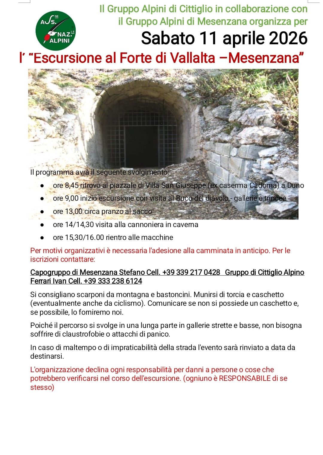 Escursione al Forte di Vallalta con i Gruppi Alpini di Cittiglio e Mesenzana
